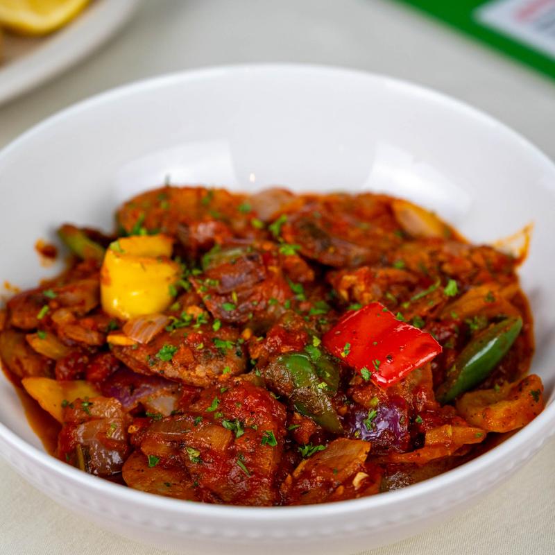Pork sausage, bell peppers & white onions pan-seared with marinara sauce.