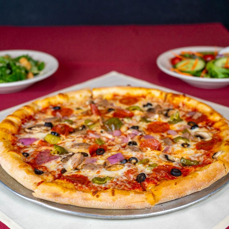 12" $20.00 | 16" $24.00 • Mozzarella, pepperoni, Italian Sausages, black olives, green peppers, onions, mushrooms.