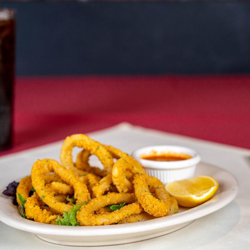 Tender squid rings lightly dusted with flour served with marinara sauce.