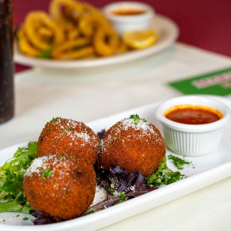 Three Aborio riceballs rolled with imported cheese served with marinara sauce.